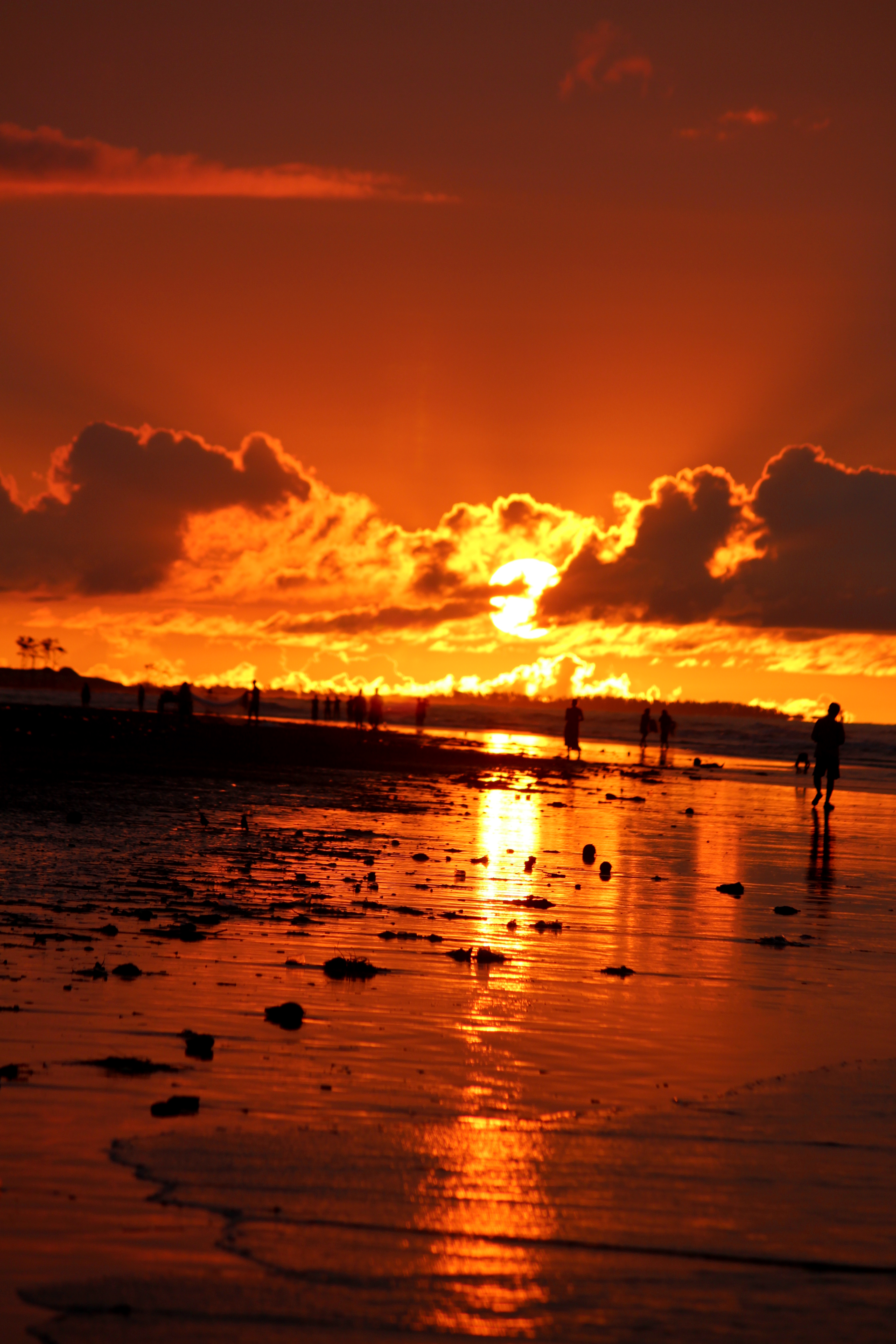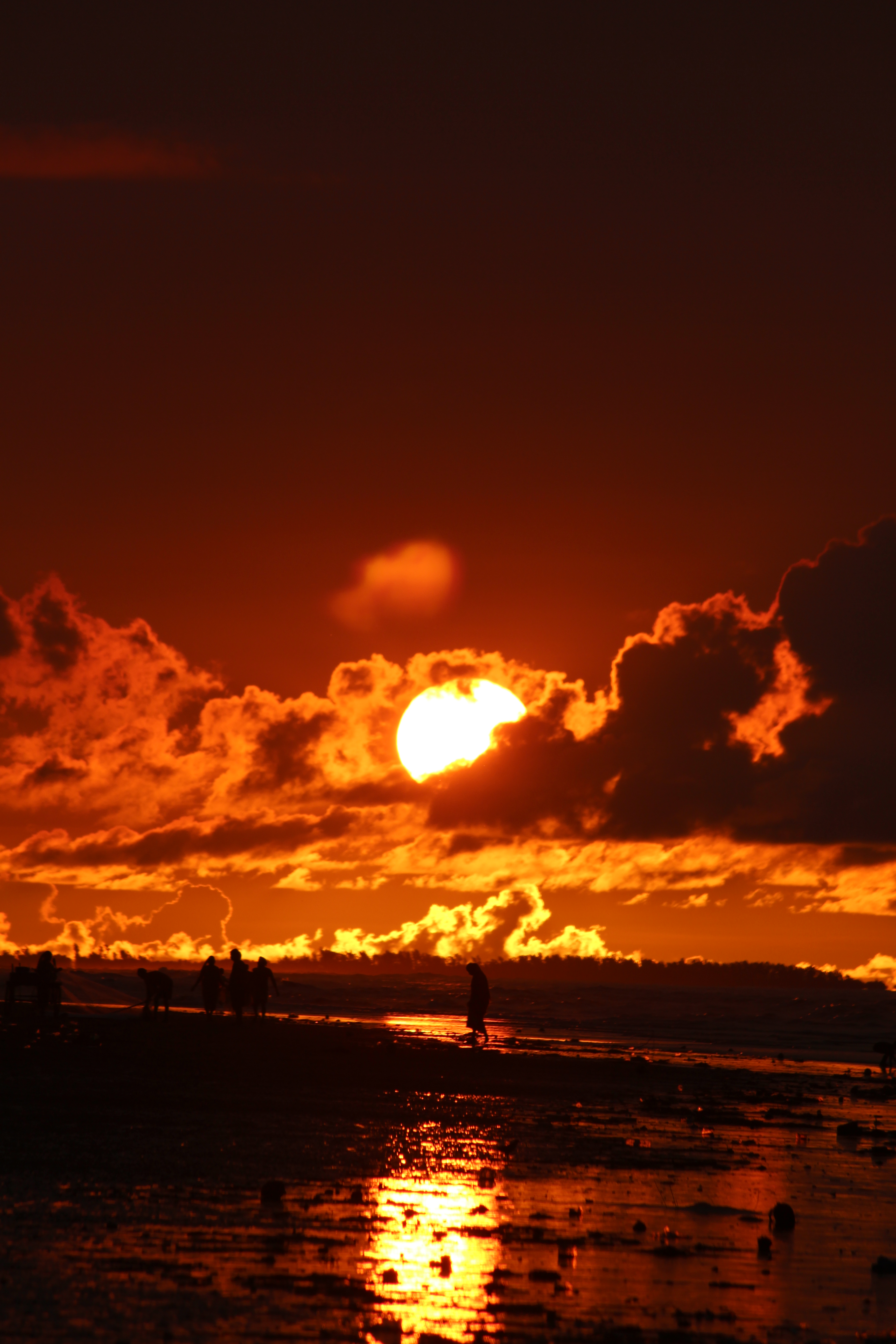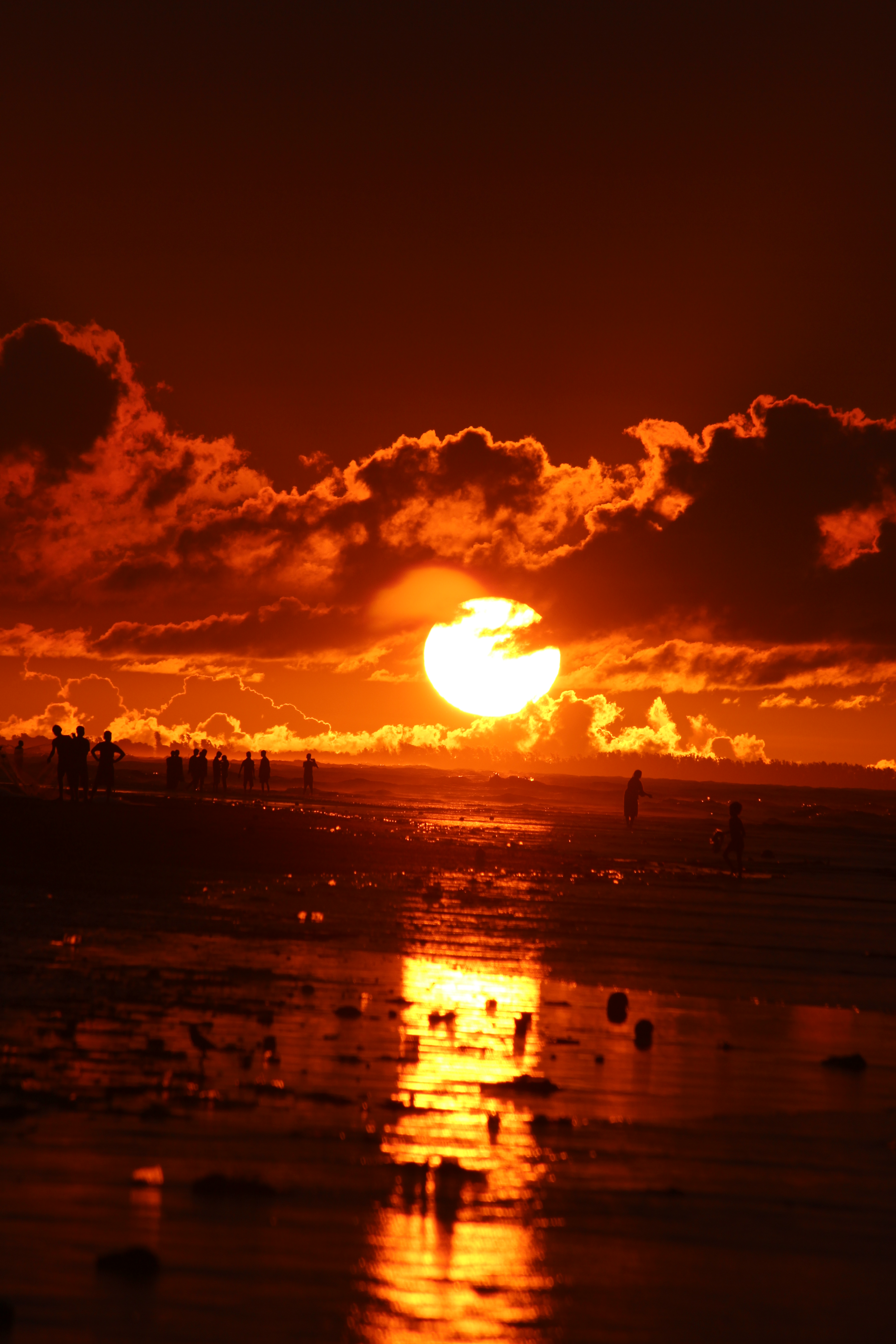 Wow ……… The sky looks so beautiful .It is a bit cloudy which brings a doubt in my mind – will I be able to watch sunrise this morning ? But the freshness of the morning with its bright colours makes the East sky just wonderful .Have a look at the golden lining of the cloudlets .It is just amazing . The contrast between the red sky and the dark beach makes it more vibrant .